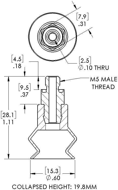 Style: Bellows Cleats: No Material: Silicone Thread Size: M5 male Bellows: 1.5 Outside Diameter: 16.0mm Weight(lbs): 0.0106 Color: Translucent Lifting Capacity: See Chart [X] CloseLifting Capacity for Item SB16-SIT-5M