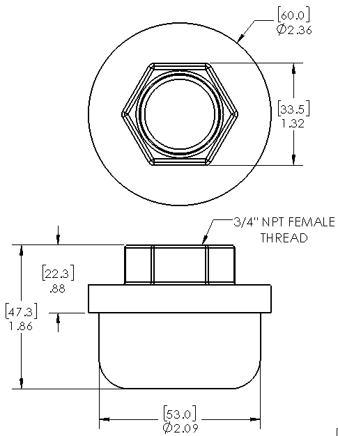 Item: 11254 - 3/4 FNPT Nylon suction line strainer, 20 mesh