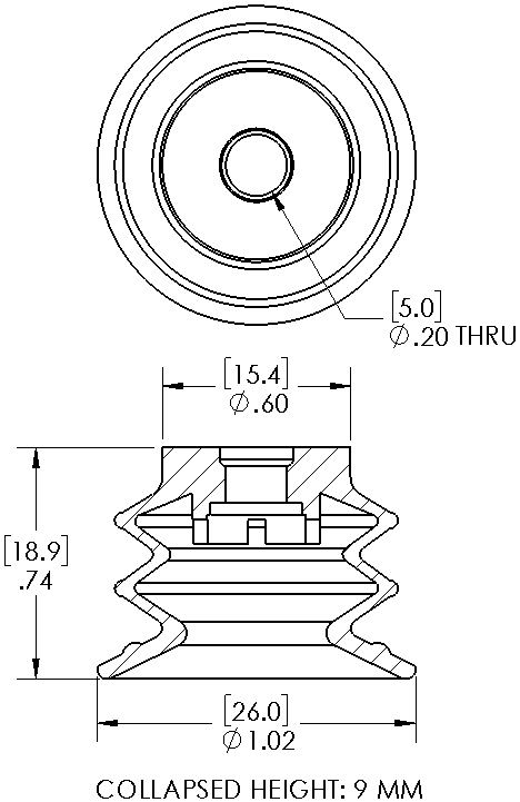 Item: MB25P-3060-F - 25mm 2.5 bellows dual durometer Polyurethane suct... (Full Description below)