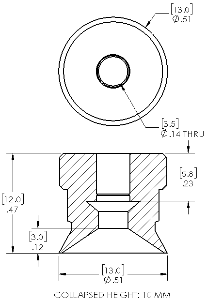 Item: V-ZP13CN - 13mm flat NBR suction cup with cleats