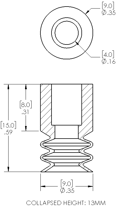 Item: MB10-HNBR - 9mm multiple bellows suction cup, H-NBR