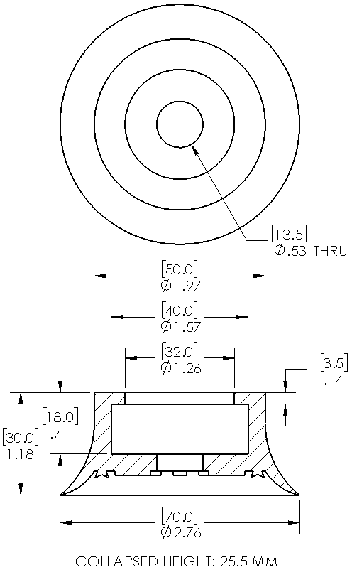 Item: 10.070.023.03/35 - 70mm flat Natural Rubber suction cup with cleats