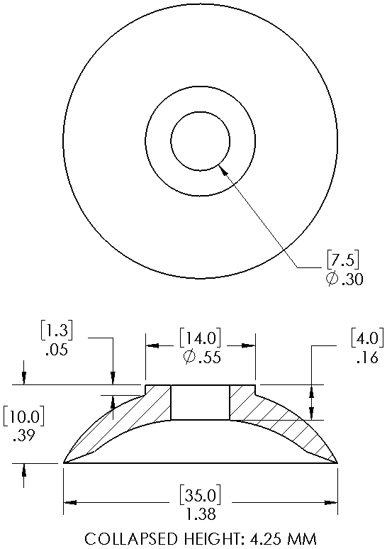 Style: Flat Cleats: No Material: Silicone Thread Size: None Outside Diameter: 35.0mm Weight(lbs): .0029 Color: Translucent Lifting Capacity: See Chart [X] CloseLifting Capacity for Item 10.035.427.02