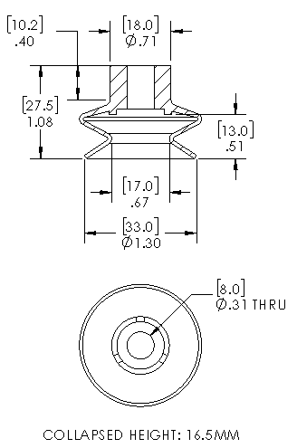 Item: SB33-HNBR - 33mm single bellows suction cup, H-NBR