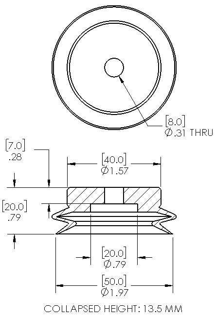 Style: Bellows Cleats: No Material: NBR Thread Size: None Bellows: 1.5 Outside Diameter: 50.0mm Weight(lbs): .0485 Color: Black Lifting Capacity: See Chart [X] CloseLifting Capacity for Item PB50-NBR