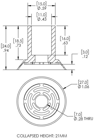 Style: Flat Cleats: Yes Material: Silicone Thread Size: None Outside Diameter: 27.0mm Weight(lbs): 0.00617 Color: Translucent Lifting Capacity: See Chart [X] CloseLifting Capacity for Item 012724S