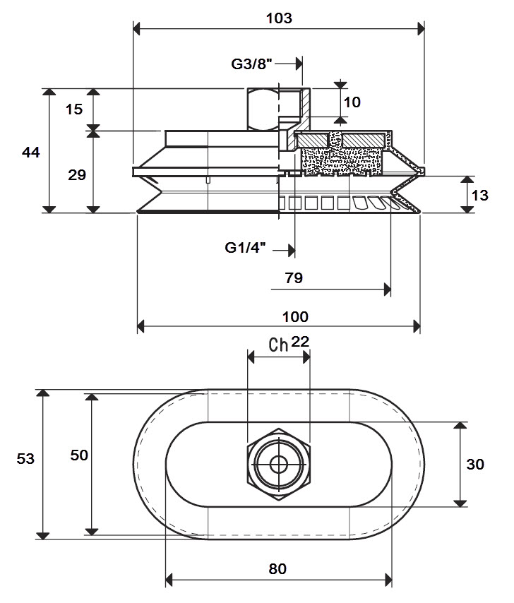 Item: VEP50100B - 50mm x 100mm flat oval suction cup with cleats, B... (Full Description below)