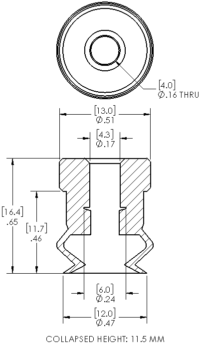 Style: Bellows Cleats: No Material: Silicone Thread Size: None Bellows: 1.5 Outside Diameter: 12.0mm Weight(lbs): .0065 Color: Translucent Lifting Capacity: See Chart [X] CloseLifting Capacity for Item V-ZP10BS