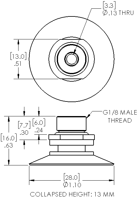 Style: Flat Cleats: Yes Material: Silicone Thread Size: 1/8" male Outside Diameter: 25.0mm Weight(lbs): .0075 Color: Translucent Lifting Capacity: See Chart [X] CloseLifting Capacity for Item PF25-SIT-G18M-LP