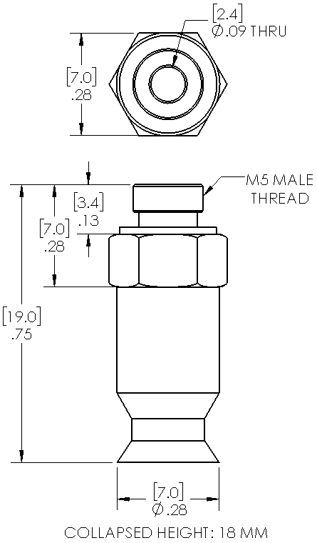 Style: Flat Cleats: No Material: Silicone Thread Size: M5 male Outside Diameter: 7.0mm Weight(lbs): .0055 Color: Translucent Lifting Capacity: See Chart [X] CloseLifting Capacity for Item V-ZPT06US-M5