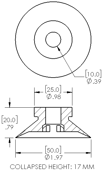 Item: 015020S - 50mm flat suction cup with cleats