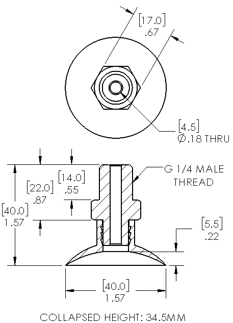 Item: 084015S - 40mm flat Silicone suction cup with G1/4 male fit... (Full Description below)