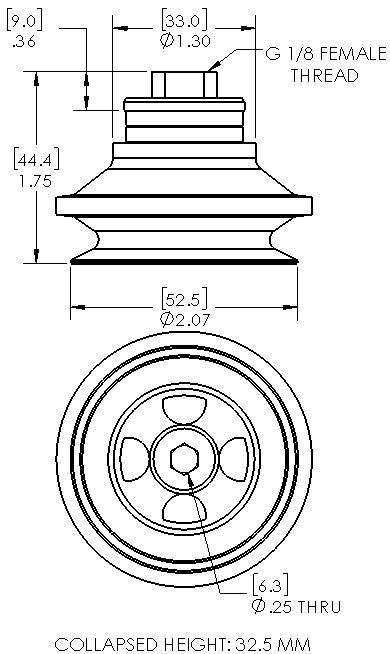 Style: Bellows Cleats: No Material: HNBR Thread Size: 1/8" female Bellows: 1.5 Outside Diameter: 52.0mm Weight(lbs): .0655 Color: Dark Red Lifting Capacity: See Chart [X] CloseLifting Capacity for Item PSB50-HNBR-G18F