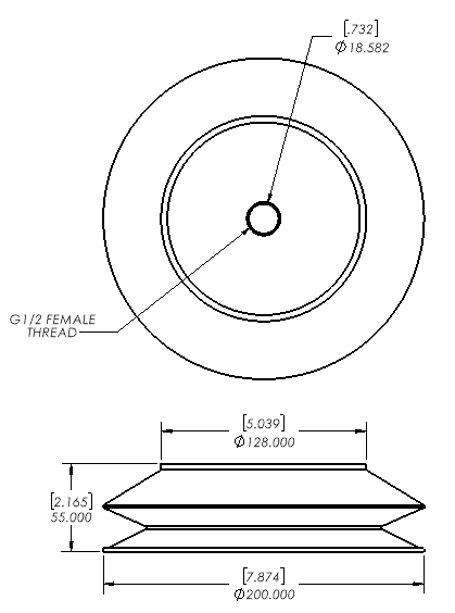 Style: Bellows Cleats: No Material: NBR Thread Size: 1/2" female Bellows: 1.5 Outside Diameter: 200.0mm Weight(lbs): 1.895 Color: Black Lifting Capacity: See Chart [X] CloseLifting Capacity for Item 15B.200.001.01