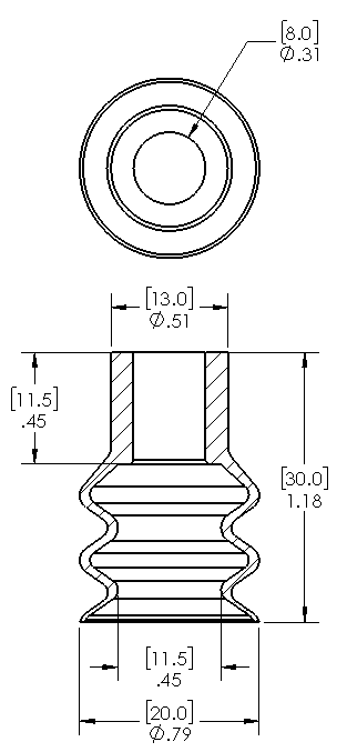 Item: 012030S - 20mm 2.5 bellows silicone suction cup for bag han... (Full Description below)