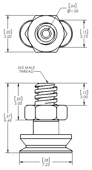 3.5mm x 7mm oval NBR suction cup with M3 male fitting