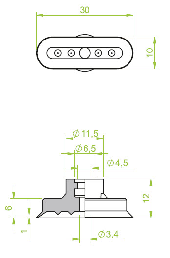 Item: 10FO.30X10.001.01-G18M - 30mm x 10mm flat oval NBR suction cup with G1/8 m... (Full Description below)