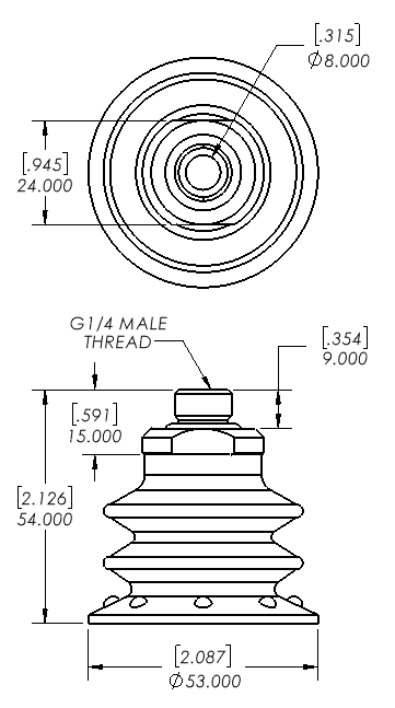 Item: MB52P-3060-G14MS - 53mm 2.5 bellows dual durometer Polyurethane suct... (Full Description below)
