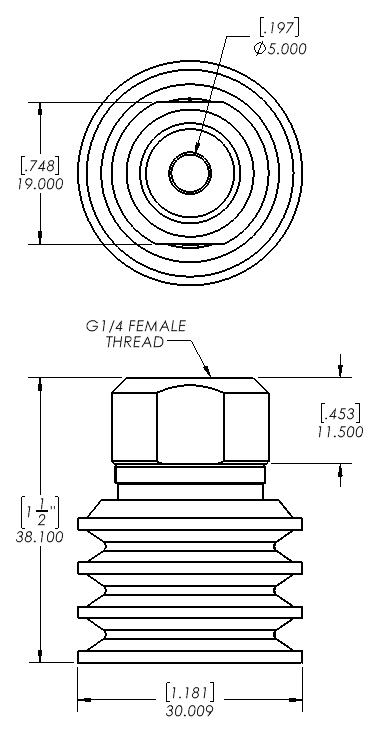 Style: Bellows Cleats: No Material: Silicone Thread Size: 1/4" female Bellows: 3.5 Outside Diameter: 30.0mm Weight(lbs): .0285 Color: Blue Lifting Capacity: See Chart [X] CloseLifting Capacity for Item 35B.030.001.02MD-G14FS