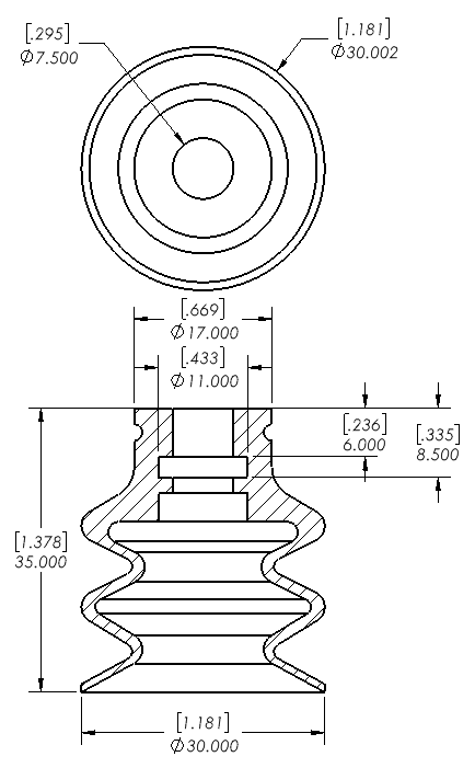 Style: Bellows Cleats: No Material: Silicone Thread Size: None Bellows: 2.5 Outside Diameter: 30.0mm Weight(lbs): .0165 Color: Red Lifting Capacity: See Chart [X] CloseLifting Capacity for Item SMB-30C-SI