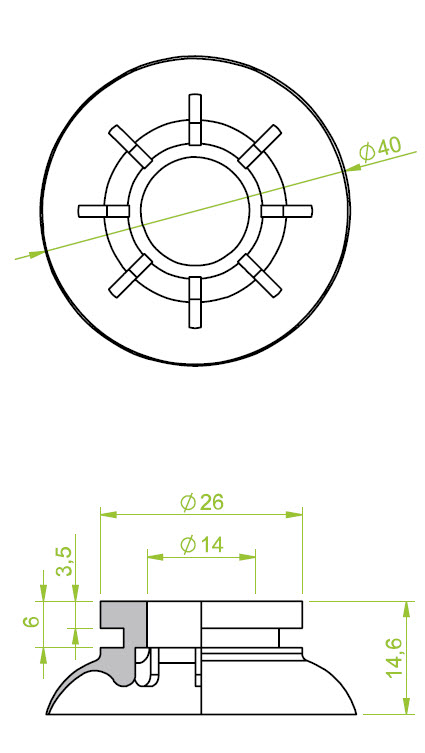 Item: 10.040.125.02-40 - 40mm flat FDA Silicone suction cup with cleats