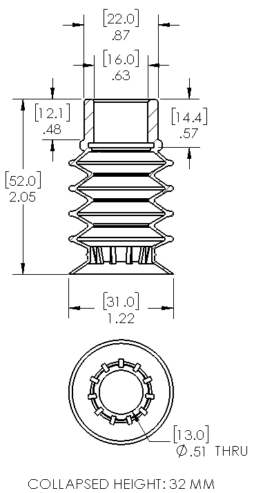 Style: Bellows Cleats: Yes Material: Silicone Thread Size: None Bellows: 4.5 Outside Diameter: 30.0mm Weight(lbs): .0190 Color: Green Lifting Capacity: See Chart [X] CloseLifting Capacity for Item 45B.030.001.02