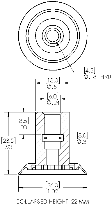 Style: Flat Cleats: Yes Material: Silicone Thread Size: None Outside Diameter: 26.0mm Weight(lbs): .0070 Color: Translucent Lifting Capacity: See Chart [X] CloseLifting Capacity for Item 10F.026.004.02