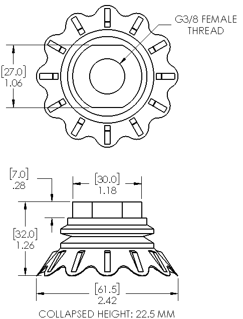 60mm flower shaped thin lip bag handling suction cup with G3/8 female fitting