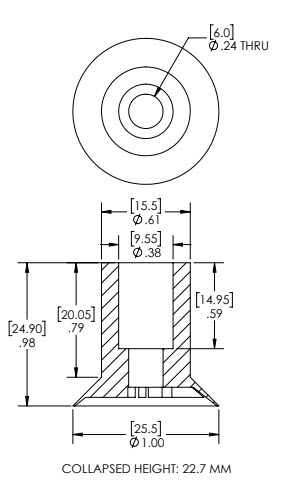 ***Disclaimer: Lifting capacity for handling a non-porous surface. Figures are theoretical and based on 80% of suction cup outside diameter with a 2:1 safety margin for horizontal lifting and a 4:1 safety margin for vertical lifting.