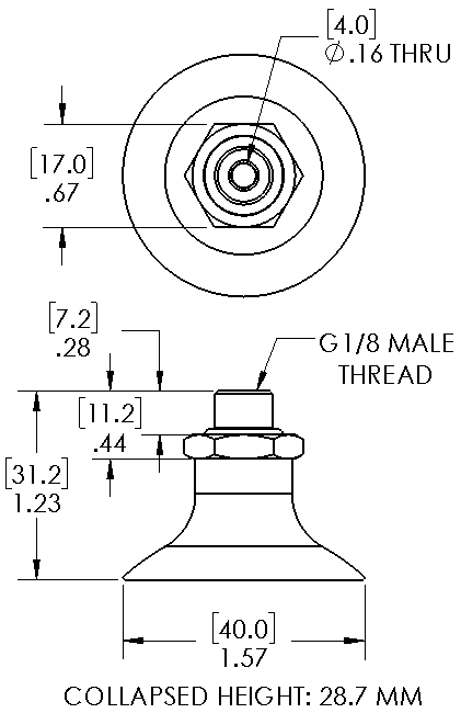 Item: 10F.040.005.01-G18M - 40mm flat black suction cup with G 1/8 male fitti... (Full Description below)