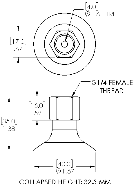 40mm flat black suction cup with G 1/4 female fitting