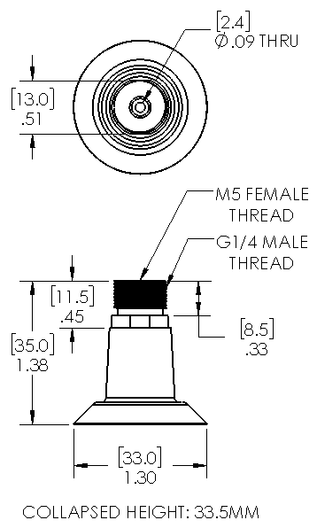 Style: Flat Cleats: Yes Material: Silicone Thread Size: 1/4" male Outside Diameter: 33.0mm Weight(lbs): .0215 Color: Translucent Lifting Capacity: See Chart [X] CloseLifting Capacity for Item 10F.033.001.02-G14M
