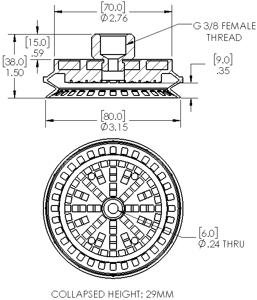 Style: Bellows Cleats: Yes Material: BENZ Thread Size: 3/8" female Bellows: 1.5 Outside Diameter: 80.0mm Weight(lbs): 0.454 Color: Red BENZ Lifting Capacity: See Chart [X] CloseLifting Capacity for Item VRS80B