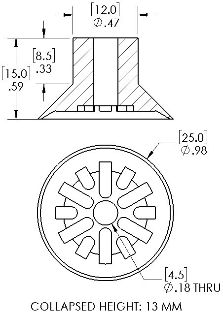Item: 10.025.328.V - 25mm flat Vinyl suction cup with cleats (VC 159)