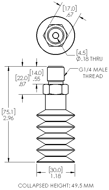 Style: Bellows Cleats: Yes Material: Silicone Thread Size: 1/4" male Bellows: 4.5 Outside Diameter: 30.0mm Weight(lbs): 0.050 Color: Translucent Lifting Capacity: See Chart [X] CloseLifting Capacity for Item 083055S