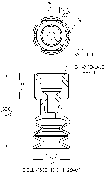 Style: Bellows Cleats: No Material: Silicone Thread Size: 1/8" female Bellows: 2.5 Outside Diameter: 18.0mm Weight(lbs): 0.013 Color: Translucent Lifting Capacity: See Chart [X] CloseLifting Capacity for Item MB18-SIT-G18F