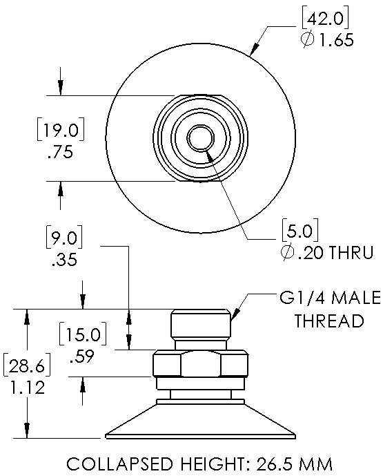 Style: Flat Cleats: Yes Material: Silicone Thread Size: 1/4" male Outside Diameter: 42.0mm Weight(lbs): 0.03 Color: Translucent Lifting Capacity: See Chart [X] CloseLifting Capacity for Item PF40-SIT-G14MS
