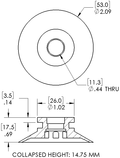 ***Disclaimer: Lifting capacity for handling a non-porous surface. Figures are theoretical and based on 80% of suction cup outside diameter with a 2:1 safety margin for horizontal lifting and a 4:1 safety margin for vertical lifting.